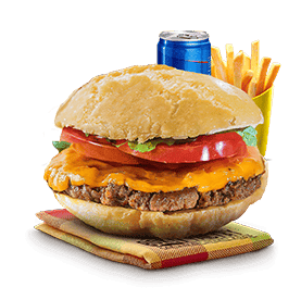 Steak, salade, tomates, emmental, sauce biggy.